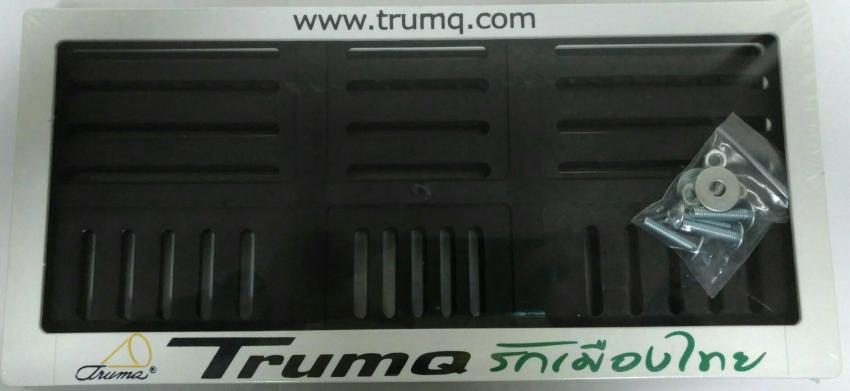 กรอบป้ายทะเบียนสีขาว มีโลโก้ "Trumq รักเมืองไทย" สีดำติดด้านล่าง กรอบสีขาว