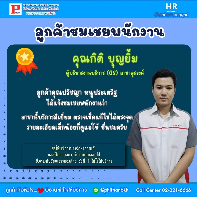 หน้าแรก >> แผนกทรัพยากรมนุษย์ >> รางวัลและการชมเชย >> ชมเชยบริการ GS/BP 2568